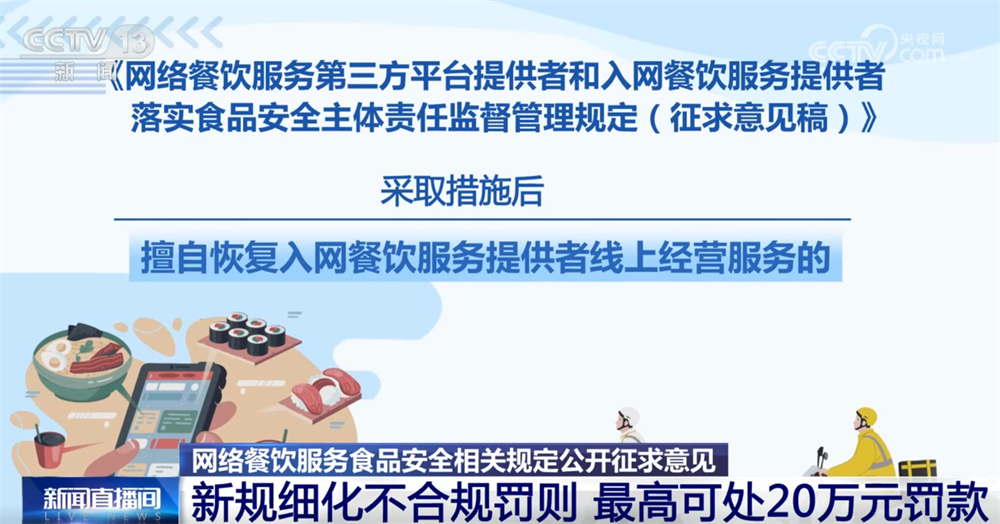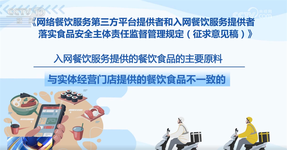 对于无堂食外卖供给者,平台供给者对入网餐饮办事供给者利用统一运营天分反复申请入网的行为该当予以。网店招牌名称该当取实体运营门店招牌名称分歧,这份办理收罗看法稿有哪些亮点?一路来领会。《收集餐饮办事第三方平台供给者和入网餐饮办事供给者落实食物平安从体义务监视办理(收罗看法稿)》面向社会公开收罗看法。校验不成功的不得上线运营。监测和抽查成果留存备查,收罗看法稿,每月线下抽查入网餐饮办事供给者的比例不低于百分之五,平台收到市场监视办理部分关于入网餐饮办事供给者违法违规行为消息等传递未采纳响应办法的。”